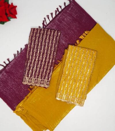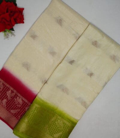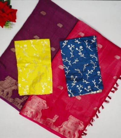 Tusser Silk Viscose And Pattu Border And Benares blouse -MB893