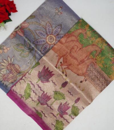 Pure Kalamkari Digital Tissue Pattu Sarees -MB898