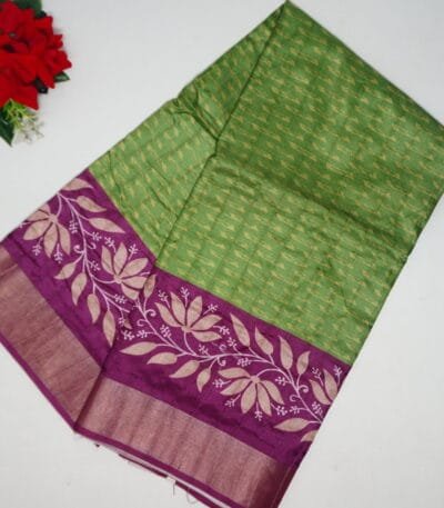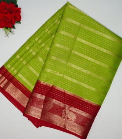 Shringar Silk With Gap Border-MB235(Parrot green To Red)