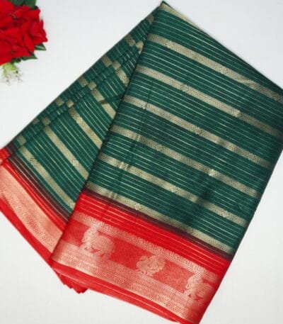 Shringar Silk With Gap Border-MB235Dark green To Red)
