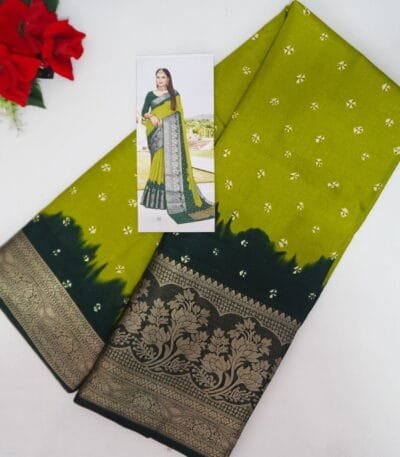 Mangalam Silk Big Border(mehandi green to Dark Green)-MB575