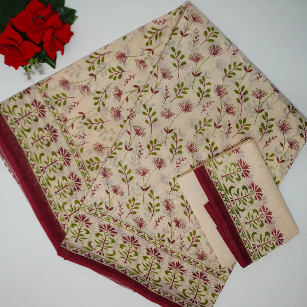 Fabric :Cream Special Cotton Sarees(Colour Based On Border)