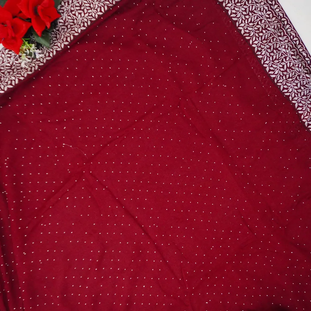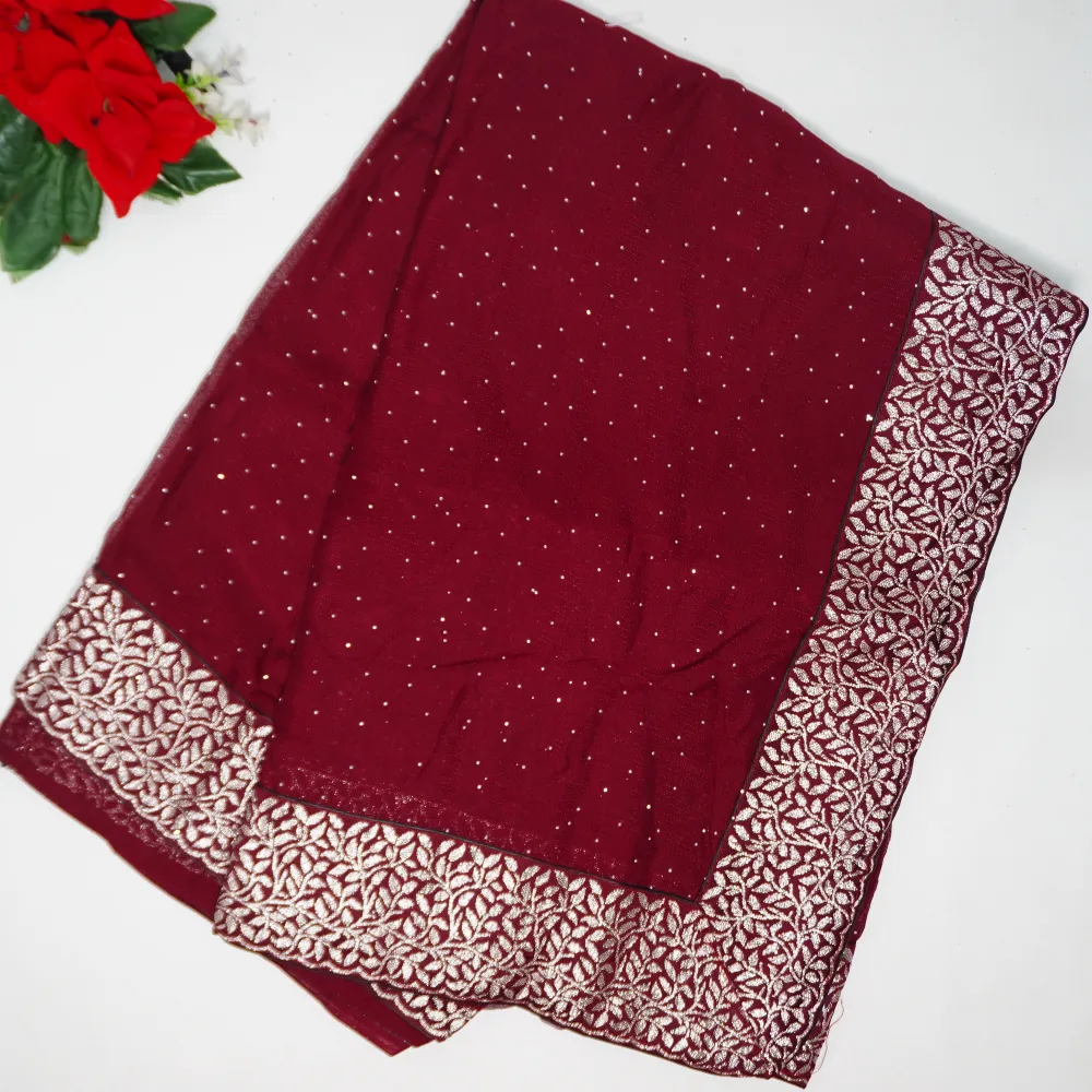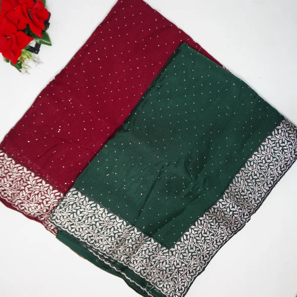 Georgette Silk With Silver Viscose Border -MB300
