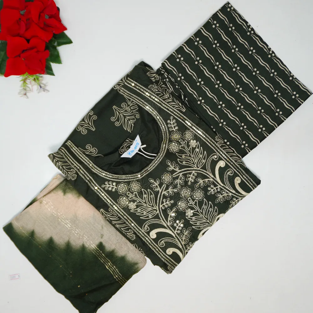 Masleeen Silk 3Peace Set Dreses(Green Special)-MB426(M-XXL)