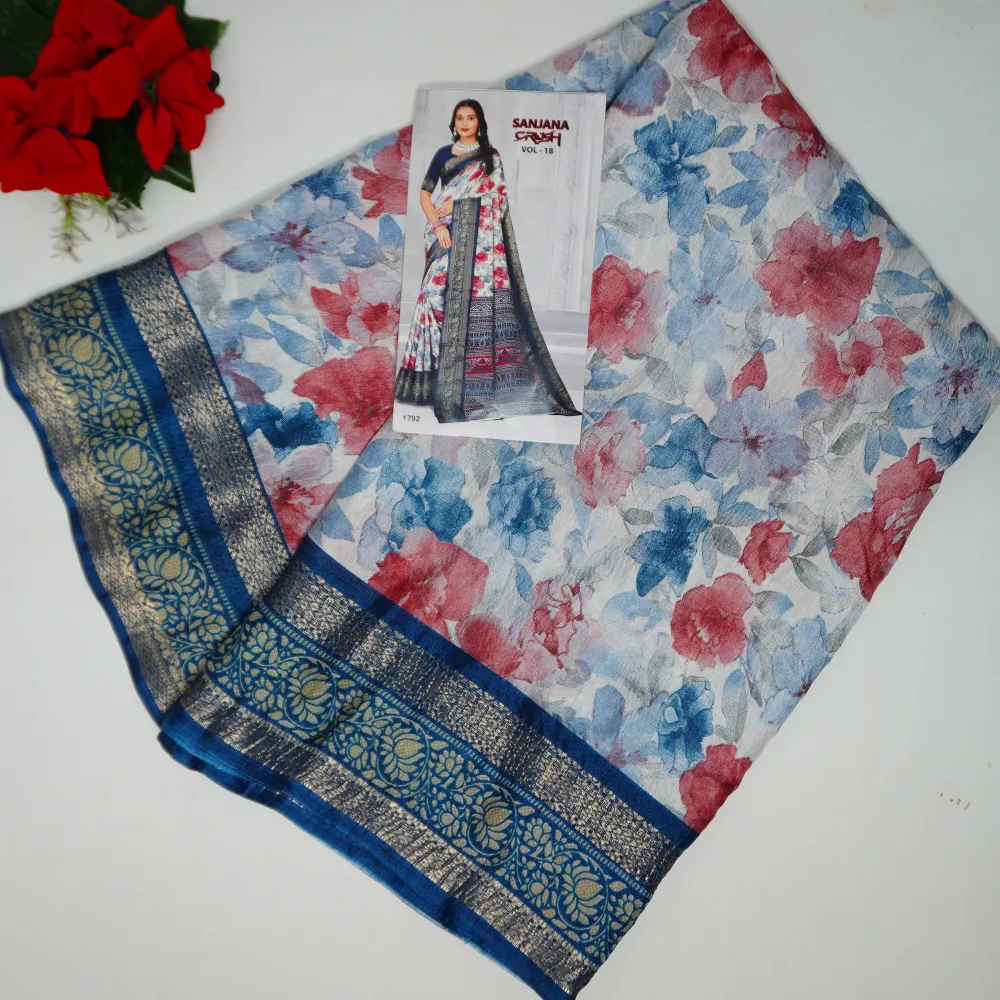 Fabric :Multi Colour Crushed Sarees(Colour Based On Border)