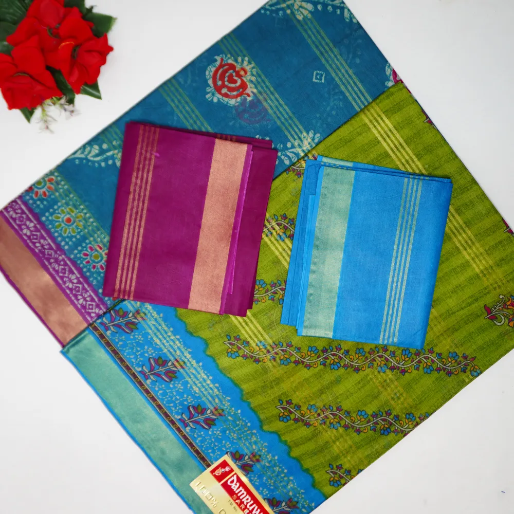 Fabric :Pochampalli Cotton With Gold Line Zarry