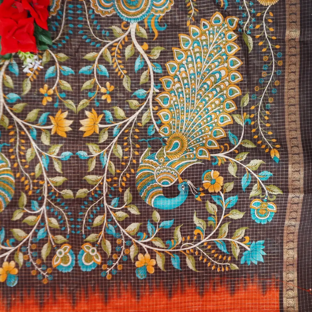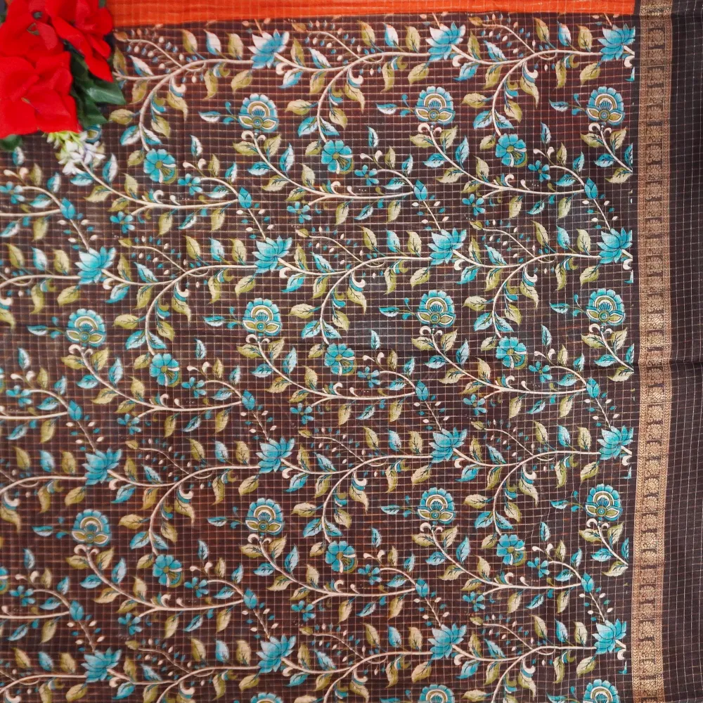 Poornima Silk With Checks( Brick red to brown)-MB484