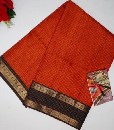 Poornima Silk With Checks( Brick red to brown)-MB484